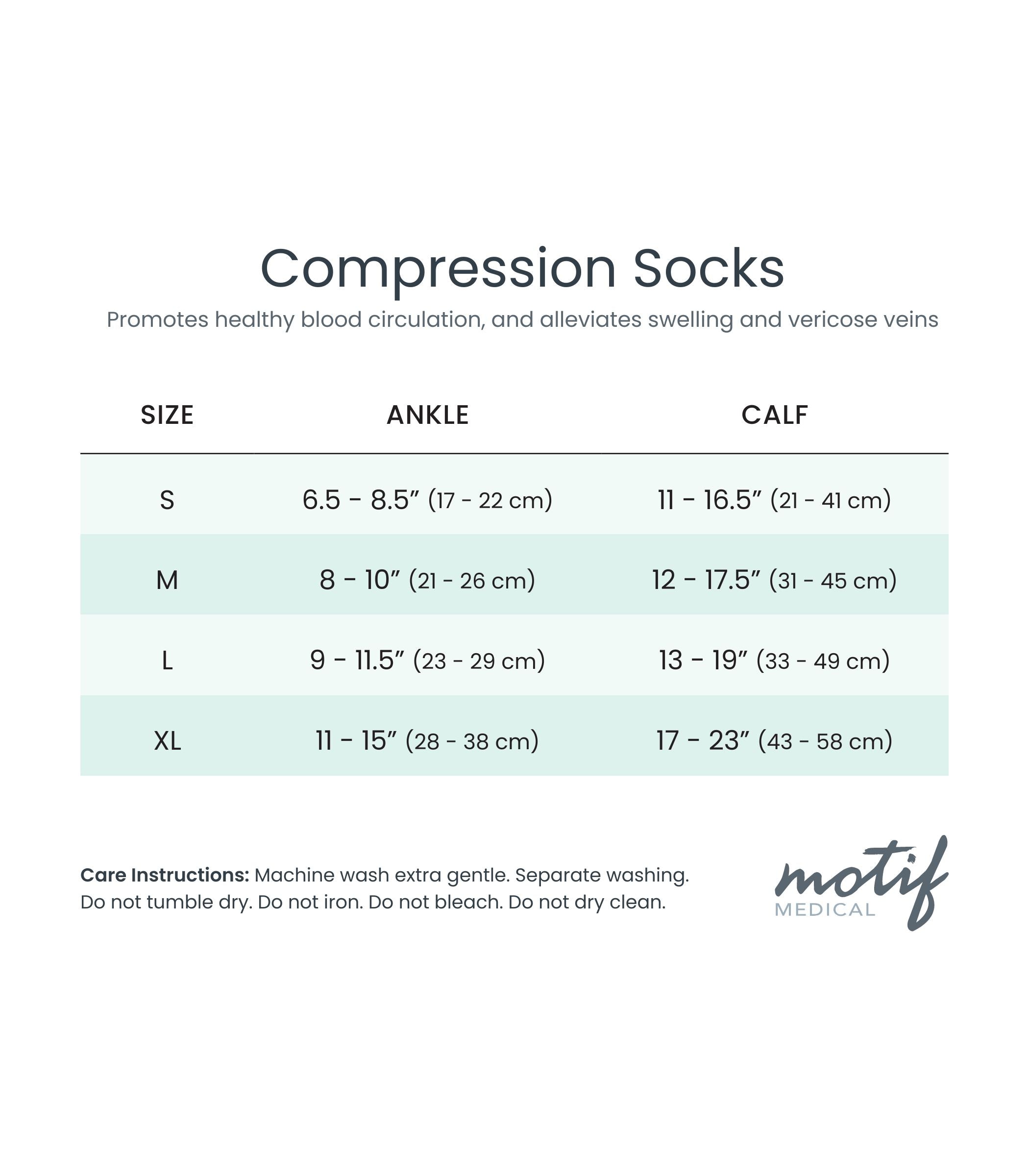 Be sure to refer to the Motif size guide below to find the correct fit to receive the right level of graduated compression.